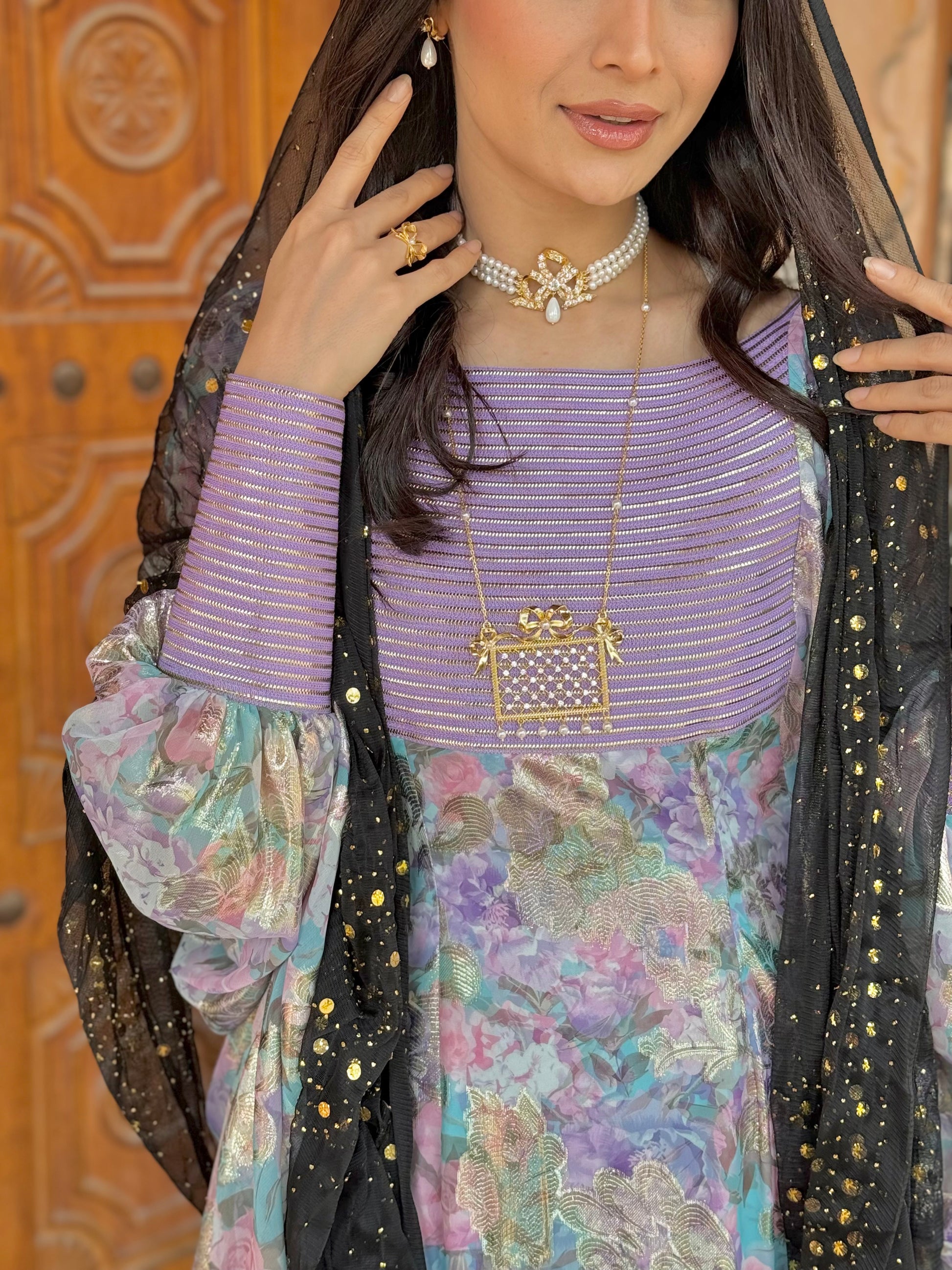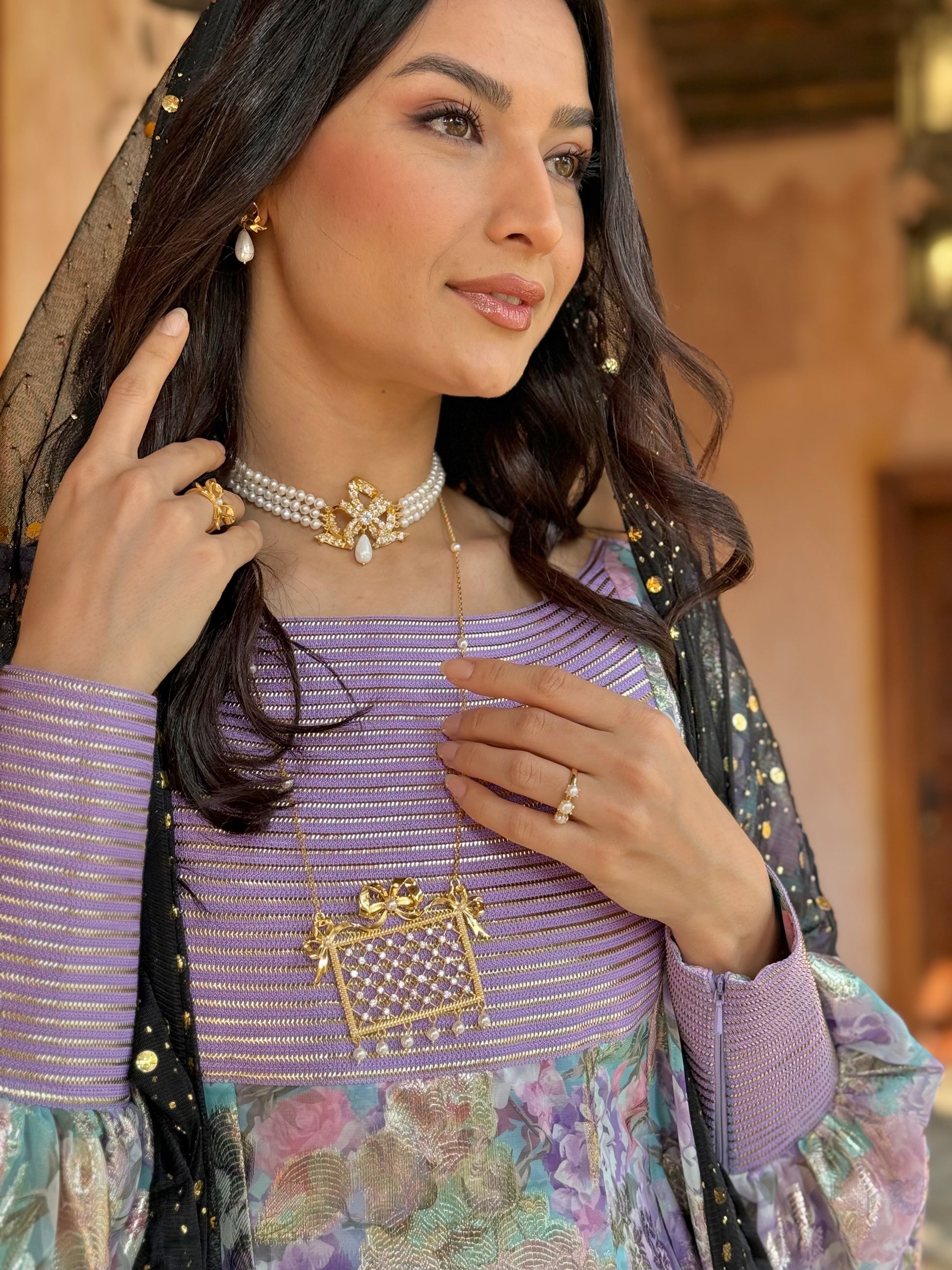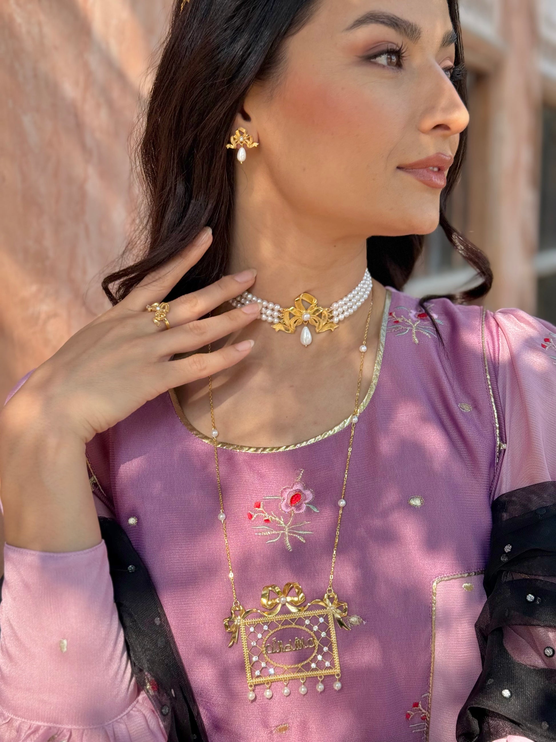 فضّة مطلي ذهب مع أحجار الزركون الأصلية و اللؤلؤ
